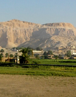 Die alten Ägypter nannten ihr Land Kemet. Dieser Name bedeutet "das Schwarze", meint aber das Fruchtland. Das im Süden befindliche schmale und langgestreckte durch steinige Berg-ketten begrenzte Niltal Oberägypten (Abb. links). Und das im Norden befindliche Delta, welches sich hinter dem heutigen Kairo breit fächernd in die Ebene erstreckt Unterägypten. Diese sind die »Beiden Länder«, die Ägypten bilden.