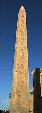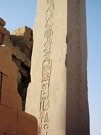 Abb. rechts: Beschrifteter Obelisk von Königin Hatschepsut; Karnak. (Foto: C.Wolfram)
