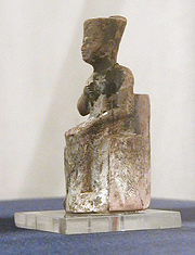 Abb. rechts: Kleine Statuette von Pharao Cheops; die einzige die es von diesem Pharao bislang als Fundstück gibt. Ägyptisches Museum Kairo. (Foto: Jon Bodsworth)