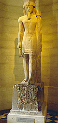 Abb. links: Pharao Sethos II., Stabträgerfigur.