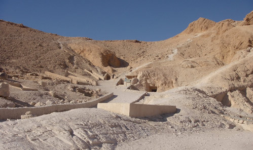 Abb. oben: das berühmte Tal der Könige in Theben-West (gegenüber Luxor) auf der westlichen Seite des Nils; zentraler Bereich. Hier wurden die Könige des Neuen Reiches begraben. (Foto: Frank Theis)