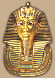 Abb. rechts: Totenmaske aus Gold aus dem Grab (KV62) von Tutanchamun im Tal der Königs.