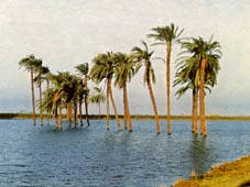 Durch seine jährlich im Hochsommer einsetzende Überschwemmung des Landes, wurde der Nil den Ägyptern zum Geheimnis, Glück und Schrecken zugleich. Man stelle sich vor, dass Assuan, das nur 90 Meter über dem Meeresspiegel liegt, von einer "mächtigen" Flutwelle überspült wurde, eine Flutwelle, die sich bis Memphis hinzog, um dann endlich im Delta ins Meer zu fließen. Wobei dieser Ablauf relativ langsam vonstatten ging. Das Delta war in vorhistorischer Zeit nicht so ausgedehnt wie heute, doch hatte es bedeutend mehr Mündungsarme. Heute sind es nur noch zwei, der Arm von Damiette und der von La Rosette. Auch die Papyrusstauden und Lotospflanzen, die man auf den Fresken aus den Königsgräbern bewundern kann, sind leider vollkommen verschwunden.