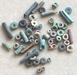 Malachit, seltener zu Perlen verarbeitet, dafür zerrieben als Augenschminke benutzt.