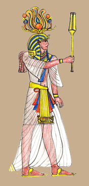 Abb. links: Pharao im Königsornat. Zeichnung: A. Semling