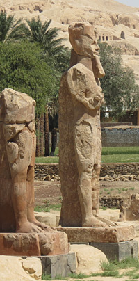 Abb. links: Statuen von Amenhotep III., die bei einer Ausgrabung nach 2000 entdeckt wurden. Westtheben.