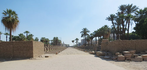 Auch ließ Amenhotep III. die beiden Tempel Luxor und Karnak durch einen in Nord-Südrichtung verlaufenden Prozessionsweg verbinden, den einst vollständige Sphinxen mit Widderköpfen flankierten.