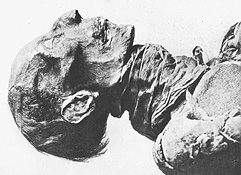 Abb. links: mumifizierter Ramses II. (Bildquelle: "Die Welt am Nil" von Adolf Erman, 1937)