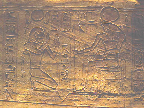 Ramses kniet vor Re-Harachte, Abu Simbel. (Foto: C.Wolfram)
