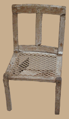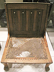 Abb. oben links: Stuhl aus Holz; Oben rechts: vornehmer Trinkbecher.