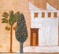 Abb. oben: Wohnhaus. Ausschnitt aus Totenpapyri, um 1300 v. Chr.
