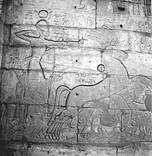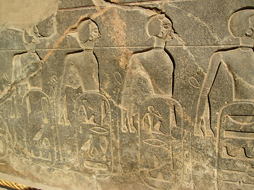 Abb. oben: Gefangene Feinde Ägyptens, dargestellt auf dem Tempel von Luxor.