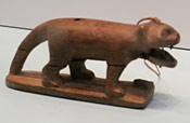 Abb. links: Spielzeugfigur aus Holz (ein Löwe),
