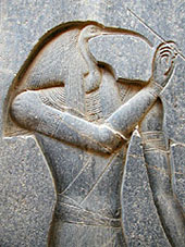 Abb. links: Thot mit Schreibbinse in der Hand.