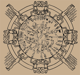 Und der moderne Tierkreis geht auf diese ägyptische Sicht des Nachthimmels zurück. Festgelegt sind u.a. hier diese Zeichen: Widder, Stier, Zwillinge, Krebs, Löwe, Jungfrau, Waage, Skorpion, Schütze, Ziegenfisch (Steinbock), Wassermann, Fische. – Das Originalrelief des Tierkreises von Dendera befindet sich heute im Museum Louvre.