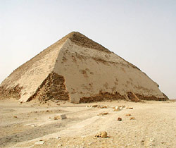 Abb. links: gut zu erkennen sind hier sogenannten Verkleidungsblöcke (auch Ummantelung genannt), der Knick-Pyramide in Dashur. (Copyright Foto: Jon Bodsworth)