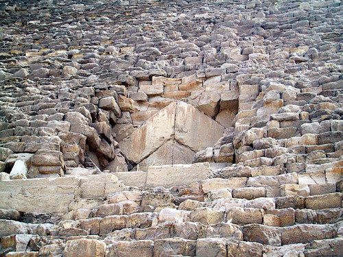 Wuchtige Giebelbalken über dem Eingang in die Cheops-Pyramide. Dieser Eingang ist auch der Original-Eingang aus der Pyramidenzeit.