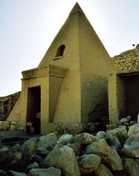 Abb. links: Pyramidengrab; Rekonstruierte Pyramide. (Foto: Elvira Kronlob)