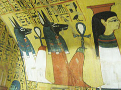 Paschedu, TT3 Die Götter Anubis und Upuaut (links). Paschedu war einst Diener auf dem Platz der Wahrheit von Theben-West. (Foto: Elvira Kronlob)