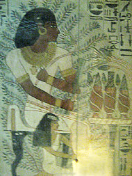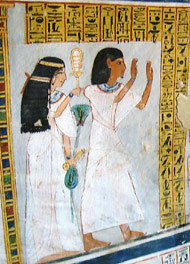In der Nekropole von Theben sind die zahlreichen Adligen-Gräber (nicht-königliche Gräber) für ihre herrlichen malerischen Darstellungen an Bild-Dekorationen zu diesseitigen Themen wie Alltags-Aktivitäten, z.B. Ernte, Fischfang oder Jagd, bekannt.