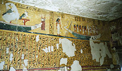 Abb. oben: Wandmalereien in WV 23 links: Totentexte, rechts: Sonnen-Paviane