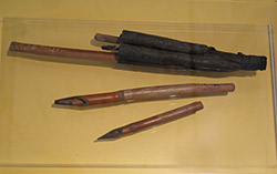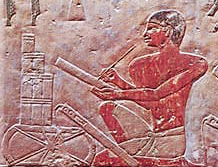 Die Ägypter benutzten keine Gänsefedern, sondern sie verwendeten Schilfrohrhalme, deren eines Ende sie weichkauten; so entstanden kleine Pinsel.