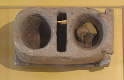 Abb. links: "Ostraka", beschriftete Scherben zerbrochener Tonkrüge oder flache Kalksteinplatten