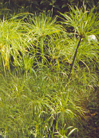 Abb. links: Papyrus-Pflanze und Papyri als Beschreibmaterial..