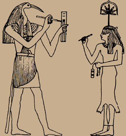 Thot als Gott der Schreibkunst und seine Gefährtin Seschat als Herrin der königlichen Archive.