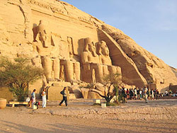 Von Assuan 350 km entfernt (auf nubischem Gebiet) liegt wohl das schönste und ehrgeizigste Bauwerk von einem der größten Pharaonen der ägyptischen Geschichte: Abu Simbel. Der Tempel, der den Göttern Amun-Re, Re-Harachte und Ptah geweiht sein sollte.