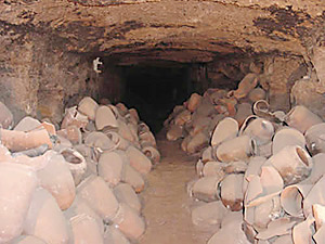 Abb links: In einer der zahlreichen Galerien in der Nekropole Tuna el-Gebel. Gefäße, die einst Tierknochen und -bündel enthielten, z.B. Ibisse.