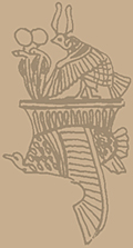 Abb rechts: Geierhaube mit Modius, zwei Uräusschlangen und nochmals ein Geier mit Atefkrone, als Symbol für Oberägypten.