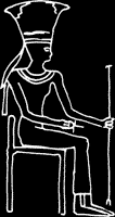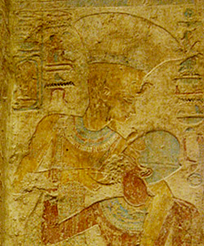 Abb. links: Anuket mit Pharao Ramses II. Sie säugt ihn mit ihrer Brust. Relief aus dem Tempel von Beit el-Wali.