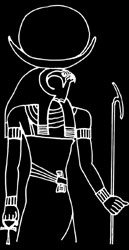 Abb. links: Chons mit seinen göttlichen Attributen und Jugendlocke.