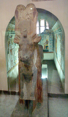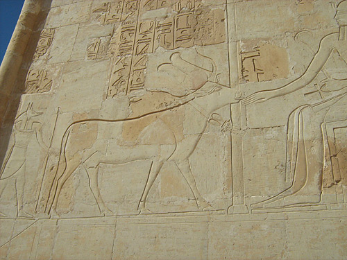Abb. oben: Hathor als Kuh. Deir el-Bahari; Tempel der Hatschepsut.
