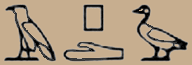 Abb. links: Hieroglyphen »Sohn des Re« altägyptisch: »Sa Ra«. Einer der Haupttitel der Titulatur des Pharaos, mit dem man seine Abkunft von der Sonne preist, wird mit der Hieroglyphen der Gans "Sa" (= Sohn) und der Sonnenscheibe "Ra" (= Re, Sonne) geschrieben.