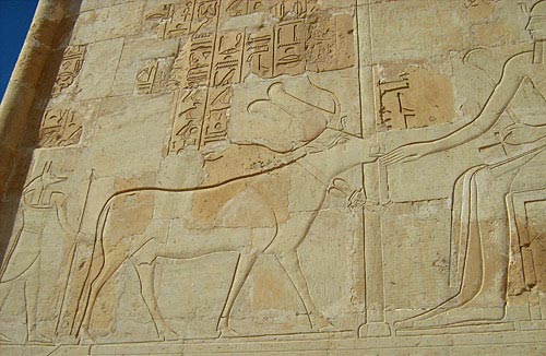Die Kuh genoß unter den heiligen Tieren mitunter die größte Verehrung. Im irdischen Bereich stand die Kuh dem Ägypter sehr nahe, sie spendete ihm Nahrung und sorgte für den Nachwuchs heiliger Stiere, die über die ganzen ägyptischen Epochen hinweg hochverehrt wurden.