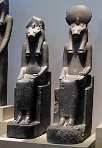 Amenophis III. ließ während seiner Regierungszeit in der 18. Dynastie (Neues Reich) Hunderte von Sachmet-Statuen in Karnak aufstellen. Viele davon sind heute in Museen weltweit verstreut; siehe auch Abbildung oben.