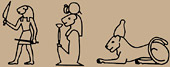 Abb. rechts: einer der beiden "Horizontlöwen", welche das "Gestern" und das "Morgen" symbolisieren oder auch den östlichen und den westlichen Horizont. Detail aus einem Totenbuch-Papyri.