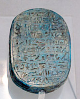Der Skarabäus war ein Symbol der Sonne. Auch Pillendreher genannt, erlangte der Skarabäus im alten Ägypten große Bedeutung; obwohl nur ein verhältnismäßig kleines wirbelloses Tier. Das hängt damit zusammen, dass der Skarabäus-Käfer eine Kugel aus Dung (Mistkugel) schafft, die er nicht nur vor sich herrollt sondern auch noch seine Eier darin ablegt, aus denen Larven entstehen und daraus später die jungen Käfer schlüpfen. Ein Vorgang den die alten Ägypter schon früh beobachteten, aber offensichtlich nicht erkannten dass die Käfer aus Larven schlüpfen. Für sie war es aber Anlaß anzunehmen, dass neues Leben, wie schon die Schöpfung (laut Schöpfungsmythen), aus dem Nichts entsteht.