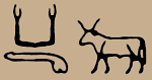 Abb. links: Hieroglyphen für das Wort Stier; ka = Stier